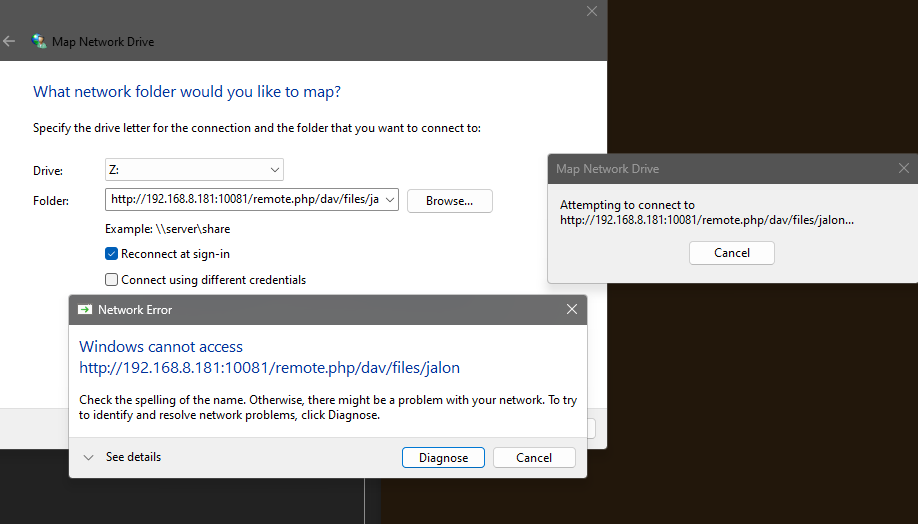¶ Window failed to mount WebDAV to local computer