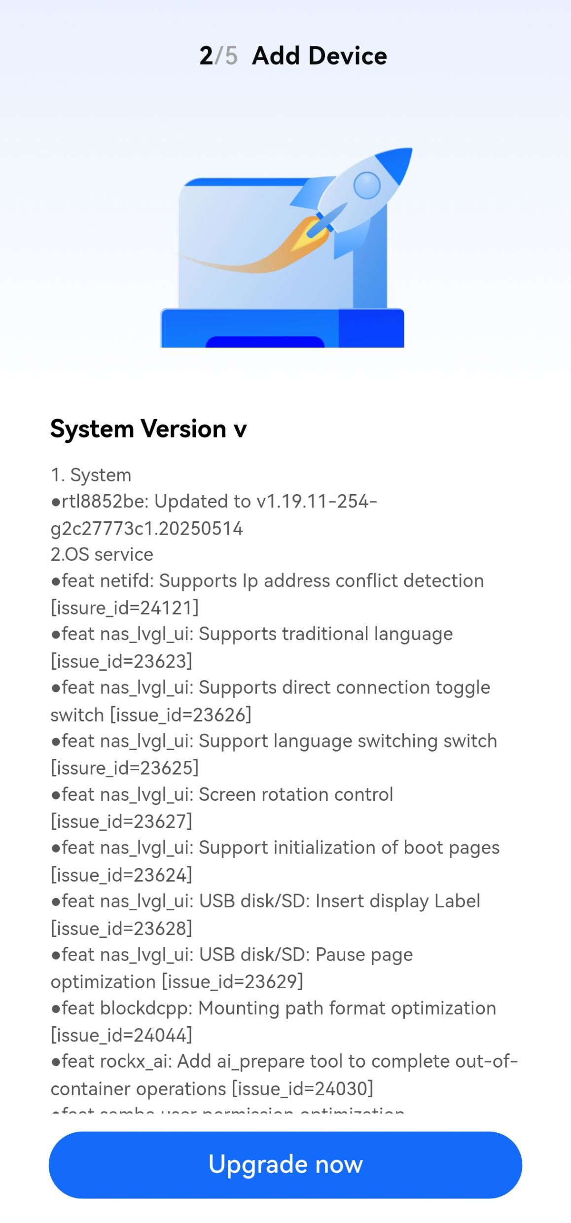 - 网络配置完成后,系统会自动检查固件更新并提示升级至最新版本;若无更新则自动跳过。