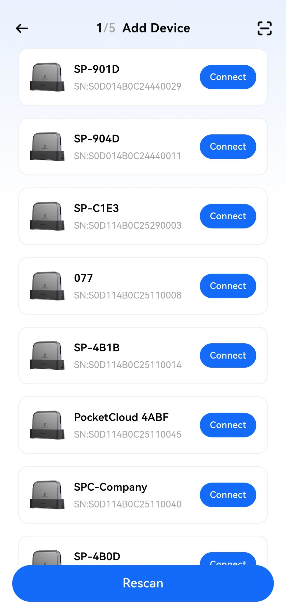 - 进入扫描设备列表,选择您的设备并在PocketCloud 设备端确认开始初始化。
